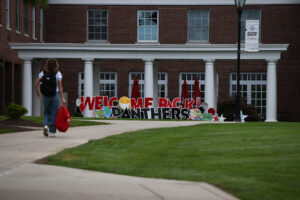 A "Welcome Back Panthers" sign is photographed on the Sewickley Academy campus on the first day for senior school students Wednesday, Aug. 27, 2025.